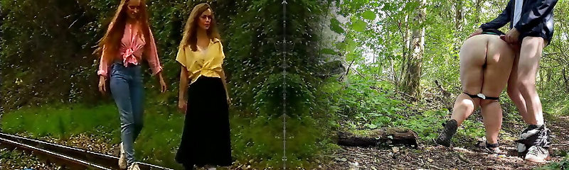 German Blonde MILF Riding Her Chubby Husband's Cock on a Railroad Track