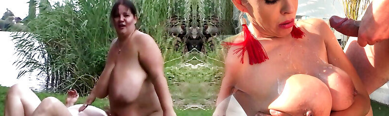 German Chubby Babe Gets Cum All Over Her Fat Tits and Horny Pussy!