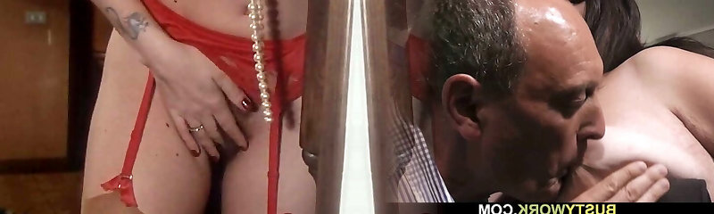 Red Lingerie Moment: Elegant Beauty Prepares For Fucking