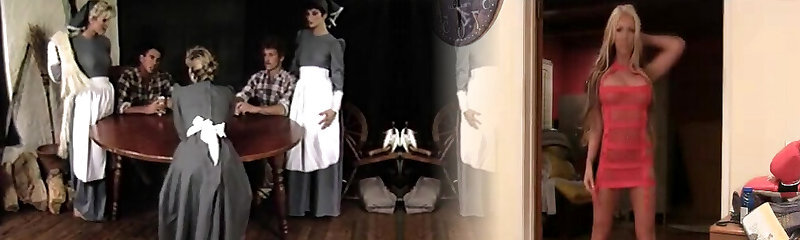 Four Hairy Dicks Fucking Horny Busty Babes in Vintage Lingerie