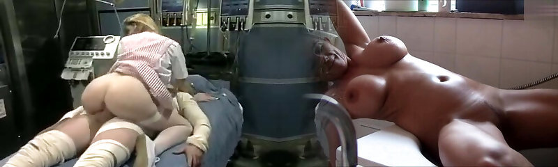 Sexy Nurse Gives Blowjob to Bootylicious Blonde Woman in Vintage Hospital Room