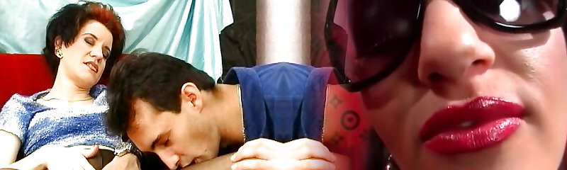 Busty Milf Licks Young Man's Cock in Vintage Porn Scene