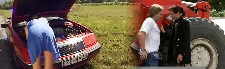 Cum Shot All Over Engine Block as Hot Chick Gets Fucked By Big Dick Driver Next to Red Roadster!